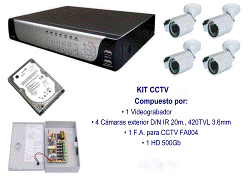 KIT Video Vigilancia completo, compuesto de: 4 cámaras 480 TVL, 1 Grabador 500 Gb, asesoramiento para su sistema seguridad si desea usted mismo realizar el montaje le facilitamos manual de instalación y puesta a punto de su sistema de seguridad . Precio 385. e. |