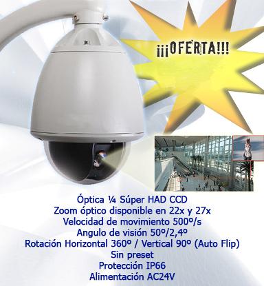 Cámara Profesional video vigilancia alta seguridad, con sistema alta velocidad de seguimiento, con protección IP, Sistema de visión alta calidad de imagen, gran zoom para control a grandes distancias y gran ángulo de visión. Precio. 357.-€ |